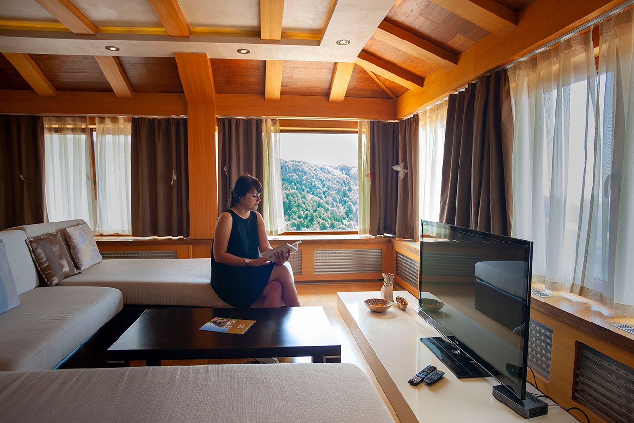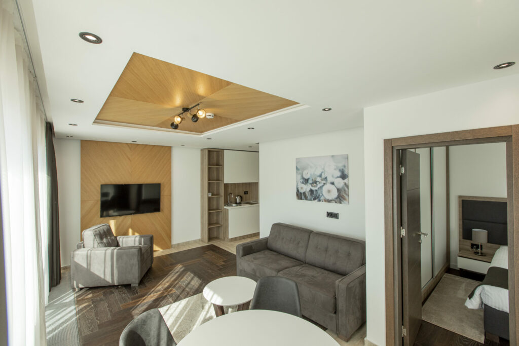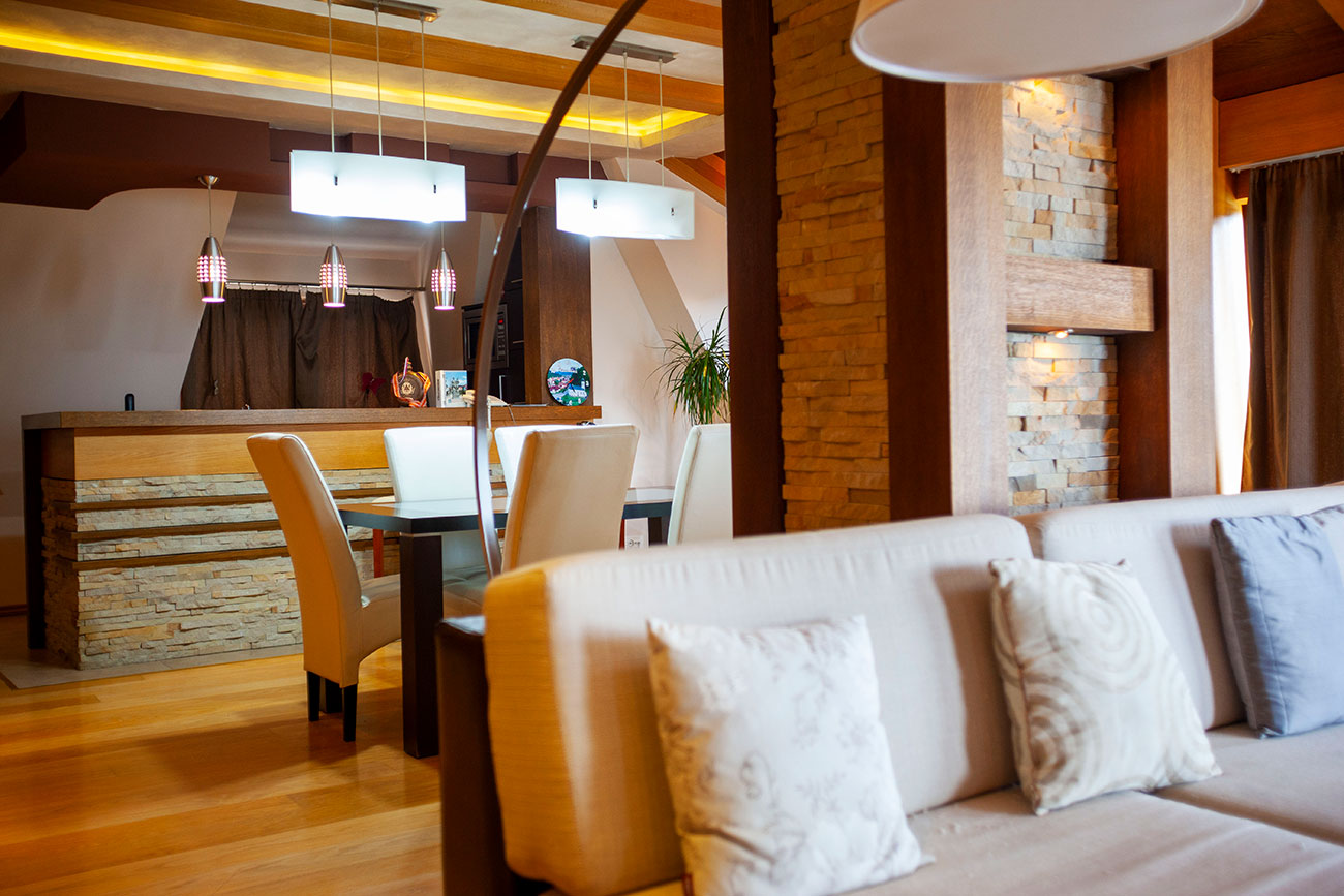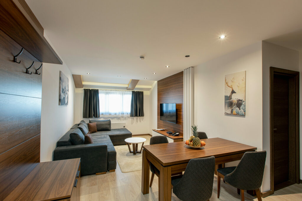 *** Royal apartman smešten je na poslednjem spratu Apart&Spa Zoned-a, na 140 m2 luksuznog prostora u dva nivoa. Apartman čine prostrana dnevna soba iz koje se sa tri strane pruža pogled na nepregledne planinske vrhove Kopaonika, trpezarija, kuhinja, dve spavaće sobe, kupatilo i master kupatilo.